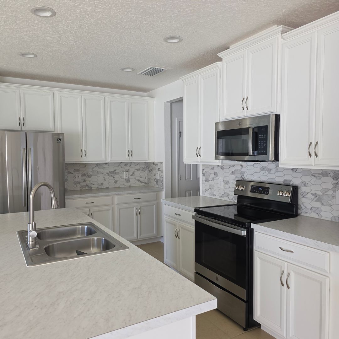 This 4-bedroom, 3-bathroom home in the gated Williams Preserve community is just minutes from Champions Gate and a short drive to Orlando’s world-famous theme parks, supermarkets, and pharmacies. The kitchen boasts a dual sink, breakfast island, 42" cabinets, dual-pane windows for energy efficiency, stainless-steel appliances, granite countertops, and plenty of cabinetry. The spacious master suite features a large walk-in closet, rain head, and separate handheld shower. Enjoy the community pool located nearby. With resort-style amenities and a prime location, this move-in-ready home offers comfort and convenience in a peaceful setting. Additional features include a fenced backyard, laundry room with washer and dryer, 2-car garage with remote access, and energy-efficient solar panels.